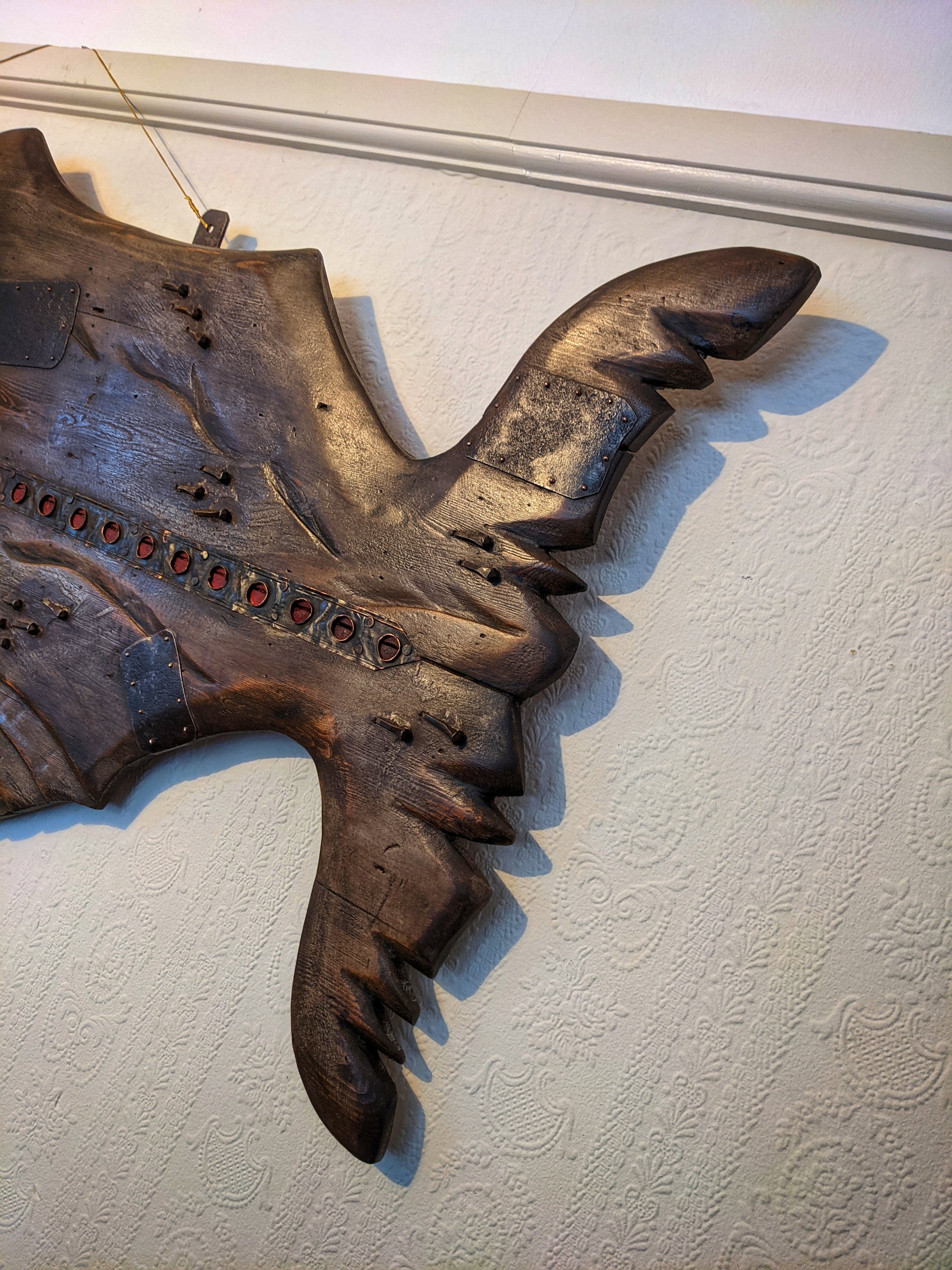 Folk art whale unique wall art, reclaimed materials solid wood reclaimed vintage metal cogs over 100 years old excellent patina measurements 116cm long 50 cm deep (SOLD)