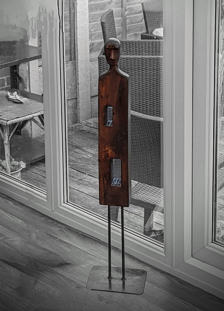 Folk/primitive art made from reclaimed wood and metal sealed with traditionally waxes