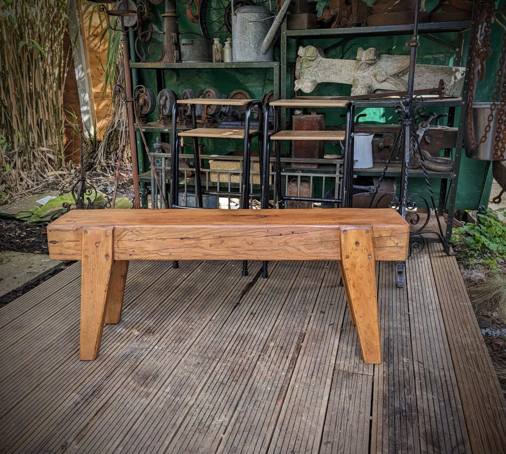 Vintage/antique study solid wood carpenters trestle excellent patina achieved over many years. cleaned. traditionally wax polished ready for the home or any setting, ideal bench height. height 46cm, width at the base 28cm, length 115cm (SOLD)